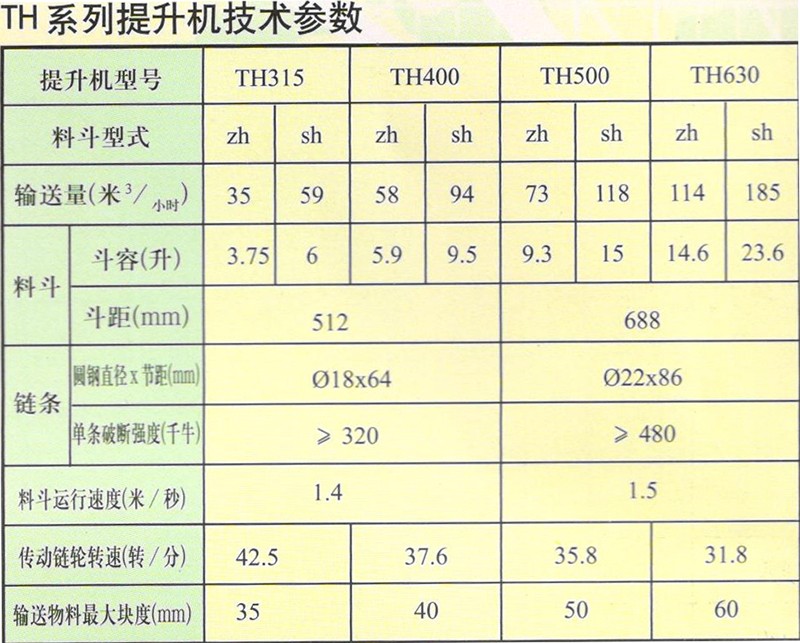 本提升機(jī)為混合或重力方式卸料,掏取式裝料,適用輸送堆積密度不大于1.5t/m3 的物料的粉狀、粒狀、小塊狀的低磨琢性物料,物料的溫度不得超過250度。